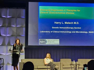 Harry Malech, MD shared the latest advances in CGD research and treatments with his perspective on the new advances in stem cell transplants and gene therapy ( moderated by Felicia Morton).
